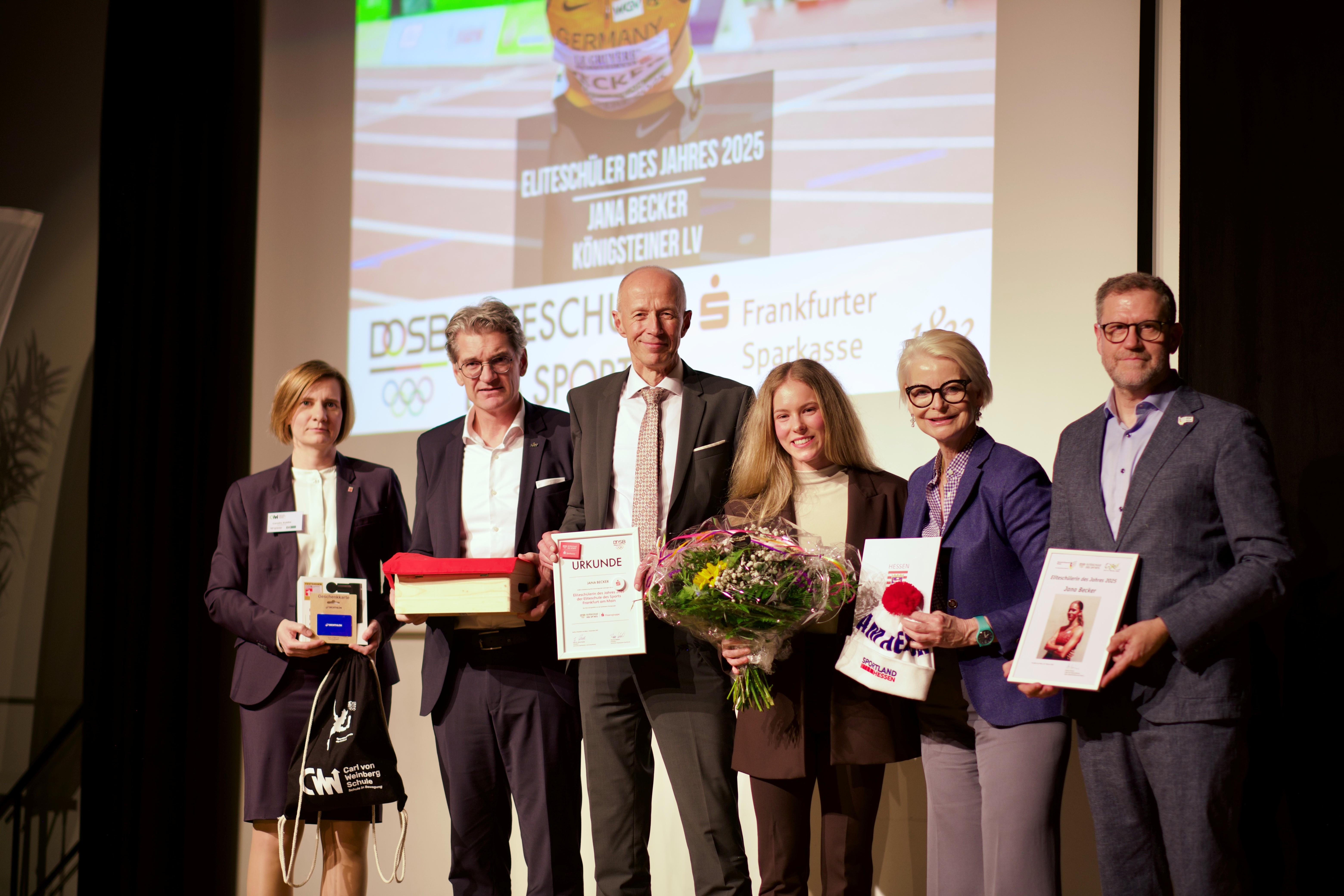 WeiterlesenMittelstreckenläuferin Jana Becker vom Königsteiner LV ist die diesjährige „Eliteschülerin des Jahres“ der Carl-von-Weinberg-Schule in Frankfurt. Die Ehrung findet jährlich statt und wird vom Olympiastützpunkt Hessen und der Carl-von-Weinberg-Schule organisiert, die zum Kreis der 43 Eliteschulen des Sports in Deutschland gehört. mehr